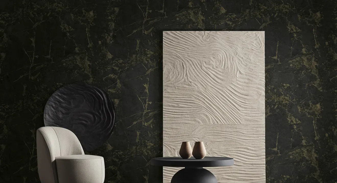 Dutch Wallcoverings laat zien dat je niet je hele huis hoeft te behangen om sfeer te creëren. Een accentwand met een krachtig patroon kan een woonkamer, slaapkamer of kantoorruimte al volledig transformeren. De rest van de muren houd je eenvoudig in rust met een effen of subtiele structuur. Zo blijft je interieur in balans en voelt het stijlvol zonder druk te worden.